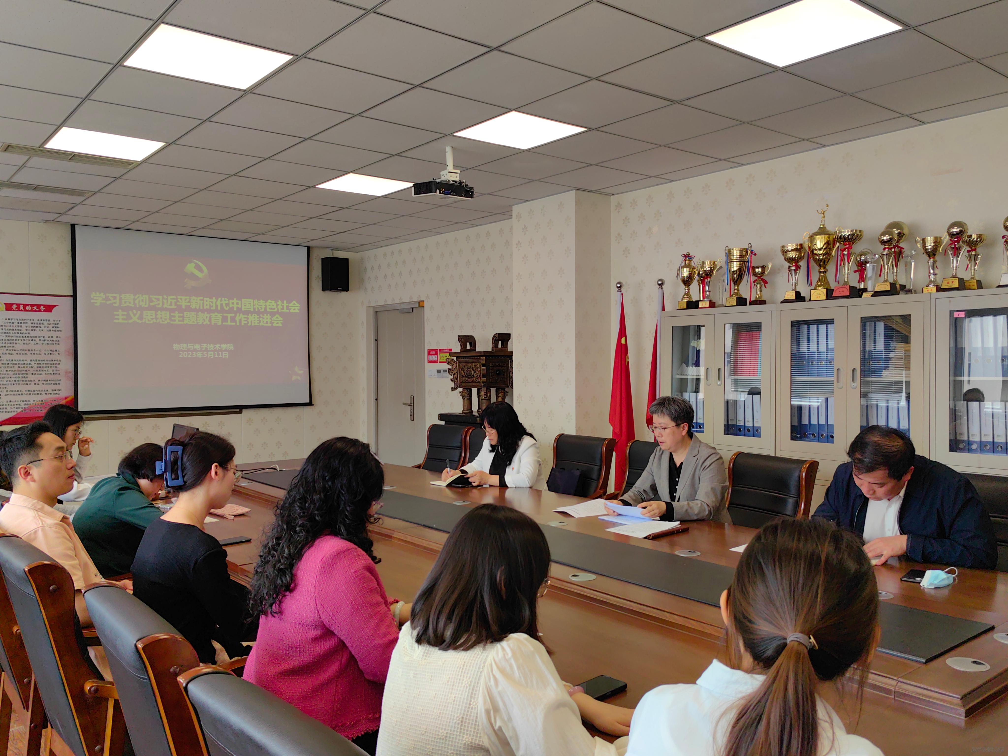 5月11日,物理与电子技术学院主题教育领导小组成员、各党支部委员召开学习贯彻习近平新时代中国特色社会主义思想主题教育推进会,对学院主题教育开展情况进行了阶段性总结,指出开展过程中存在的不足,并对学院下一阶段主题教育工作作出具体安排。