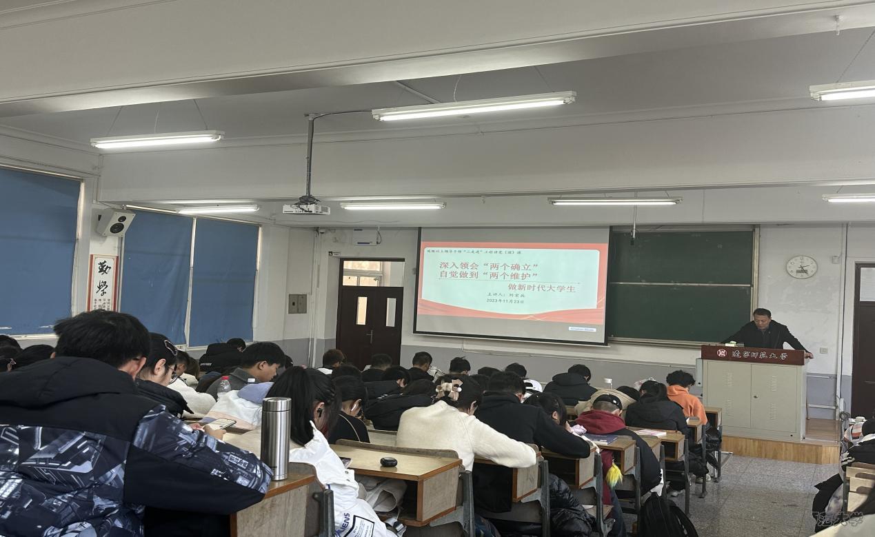 11月23日14时,保卫处处长刘宏兵老师来到物理与电子技术学院,走进“一站式”学生社区,以《深入领会“两个确立” 自觉做到“两个维护”——做新时代大学生》为主题为我院2023级物理学(师范)专业学生上了一堂内涵丰富的专题党课,物理与电子技术学院党委副书记雷鸣老师,组织员周媛老师,2023级本科生辅导员李昭锟老师参加本次党课学习。