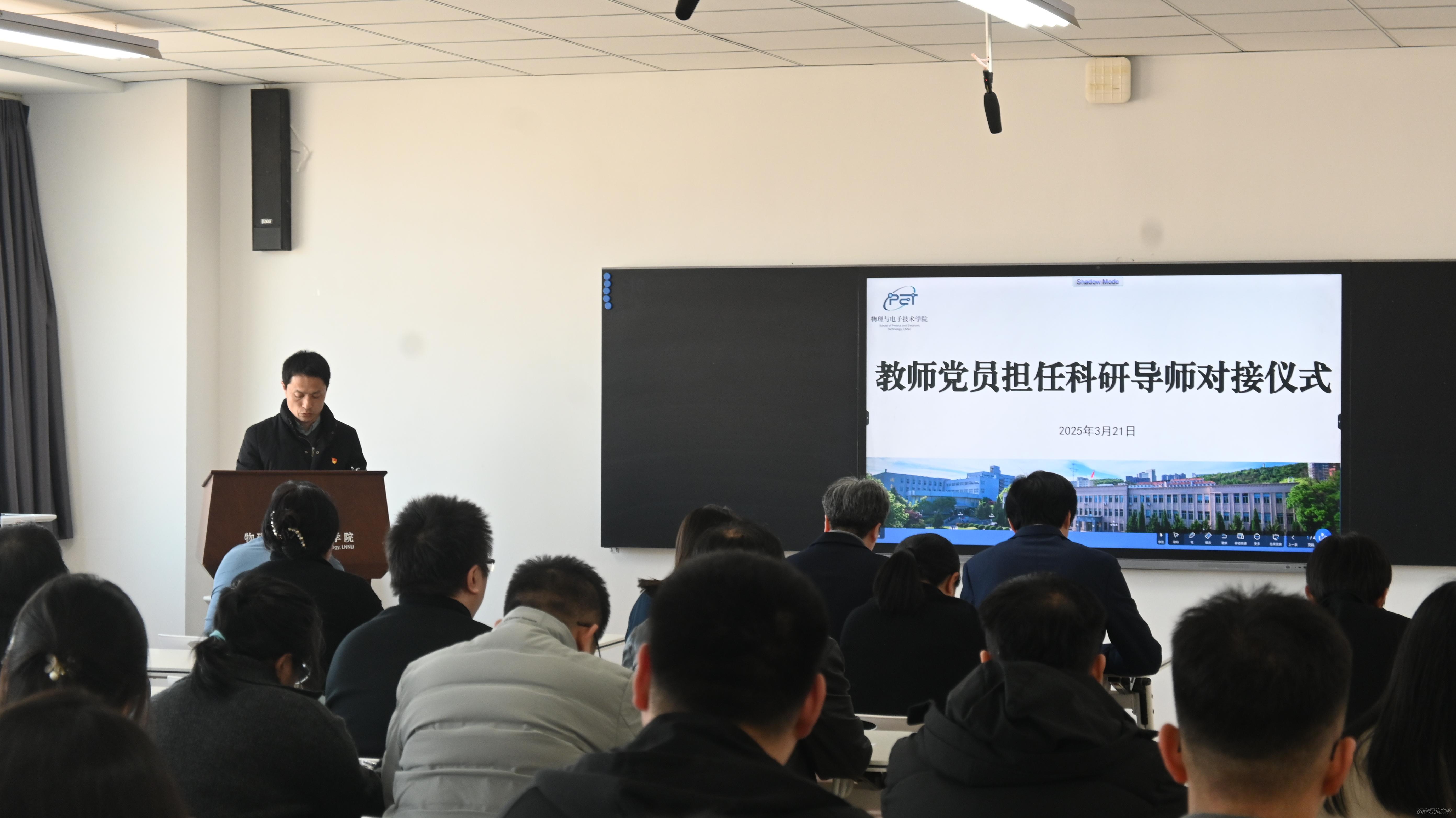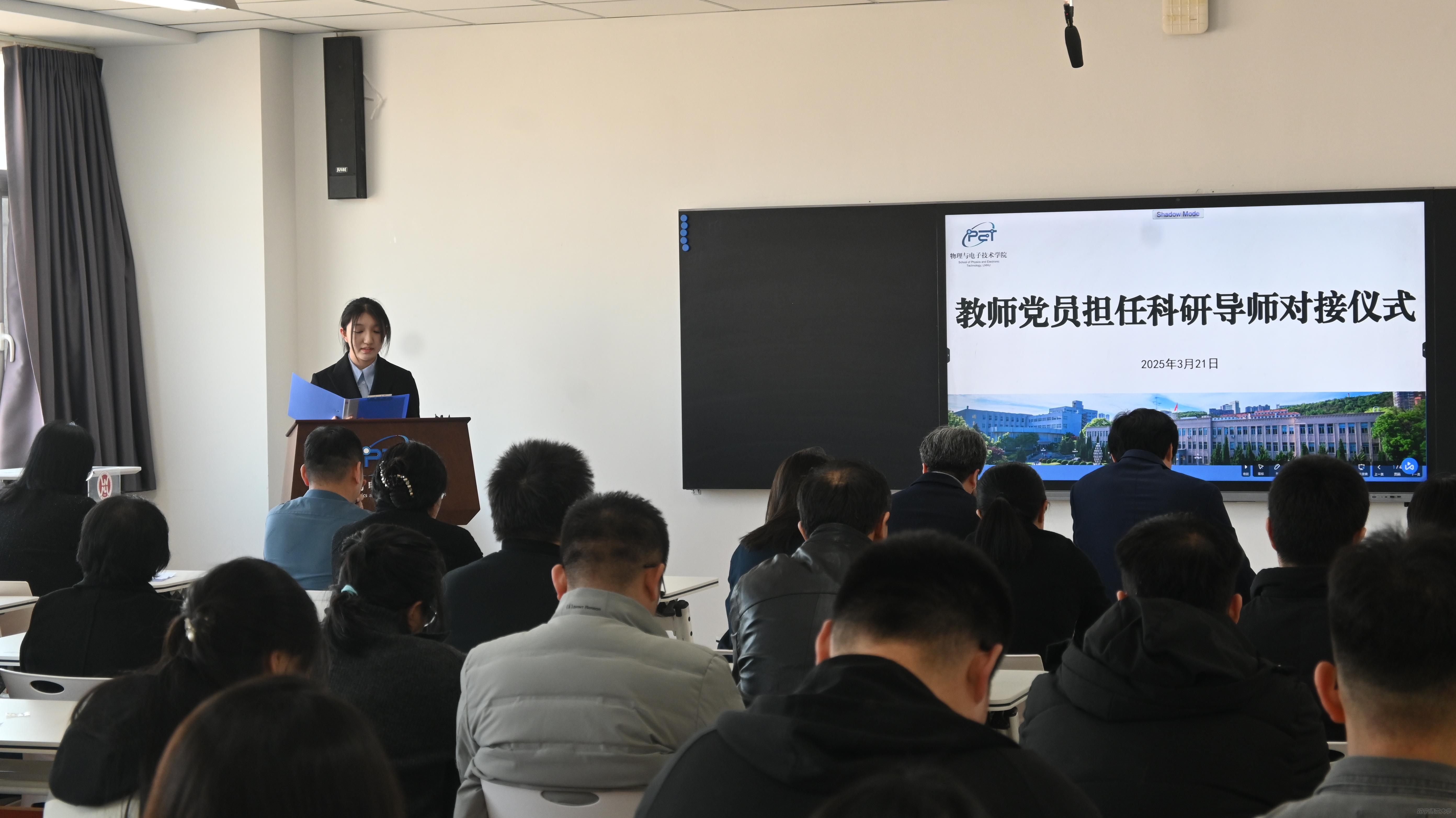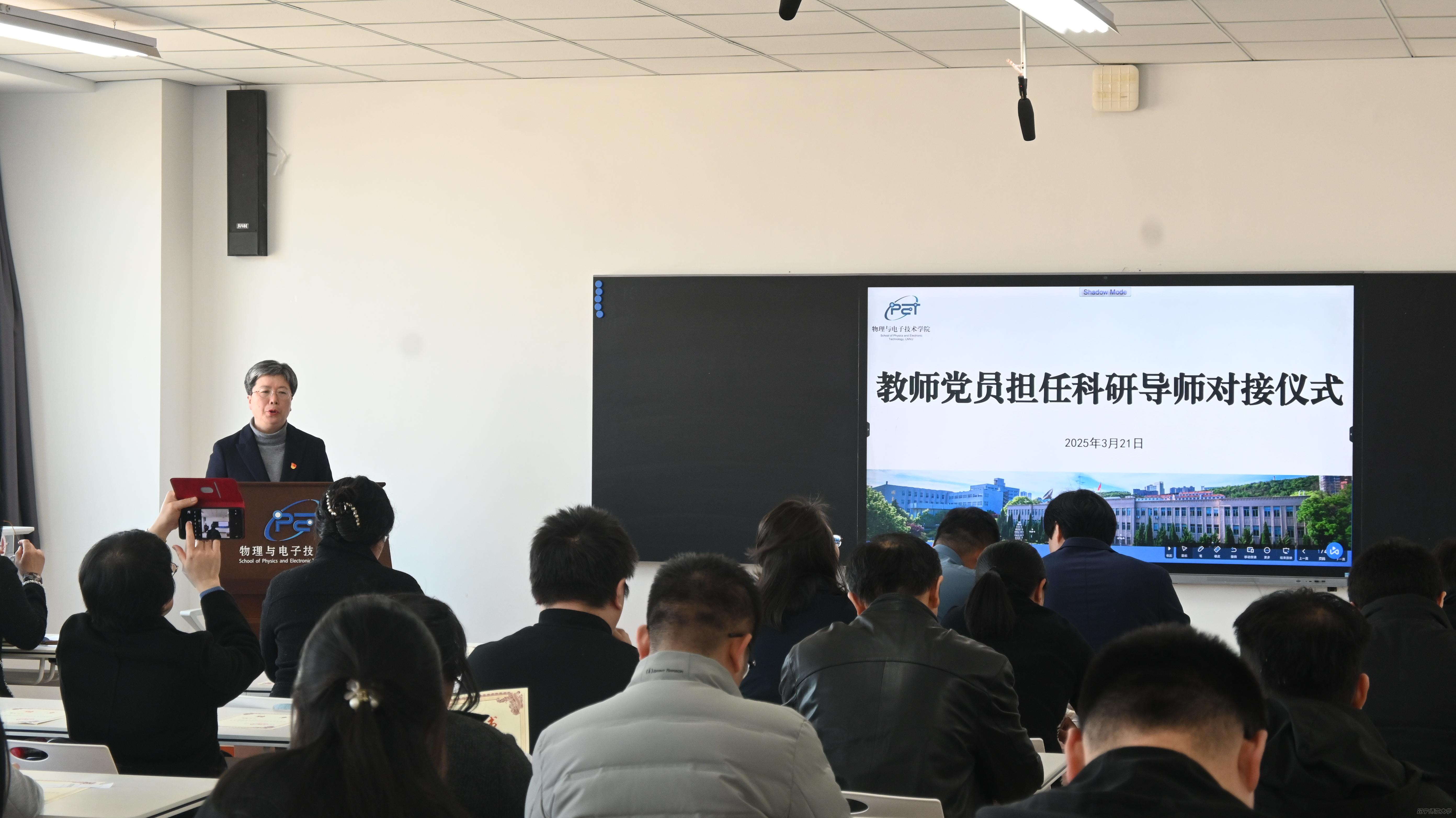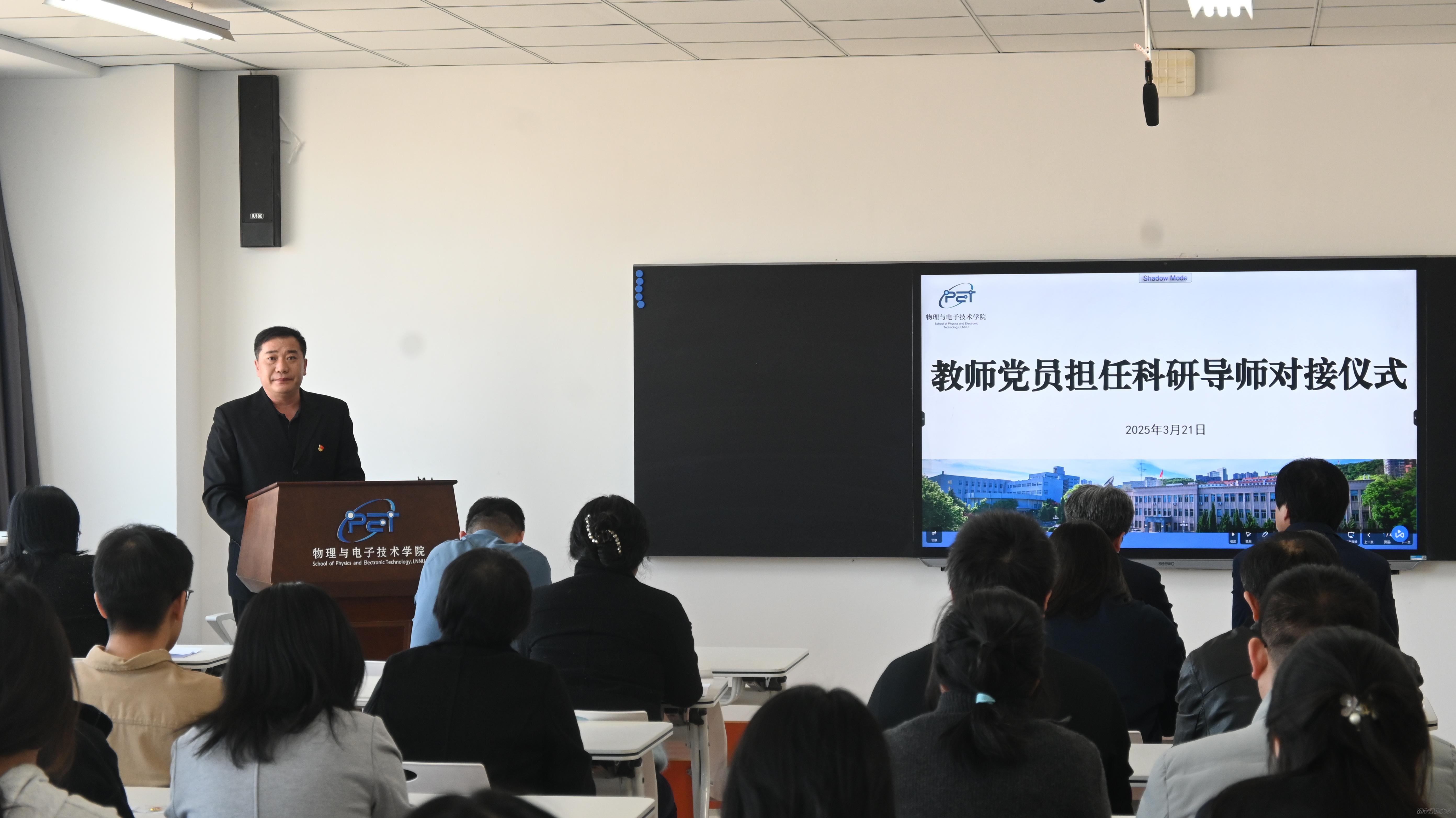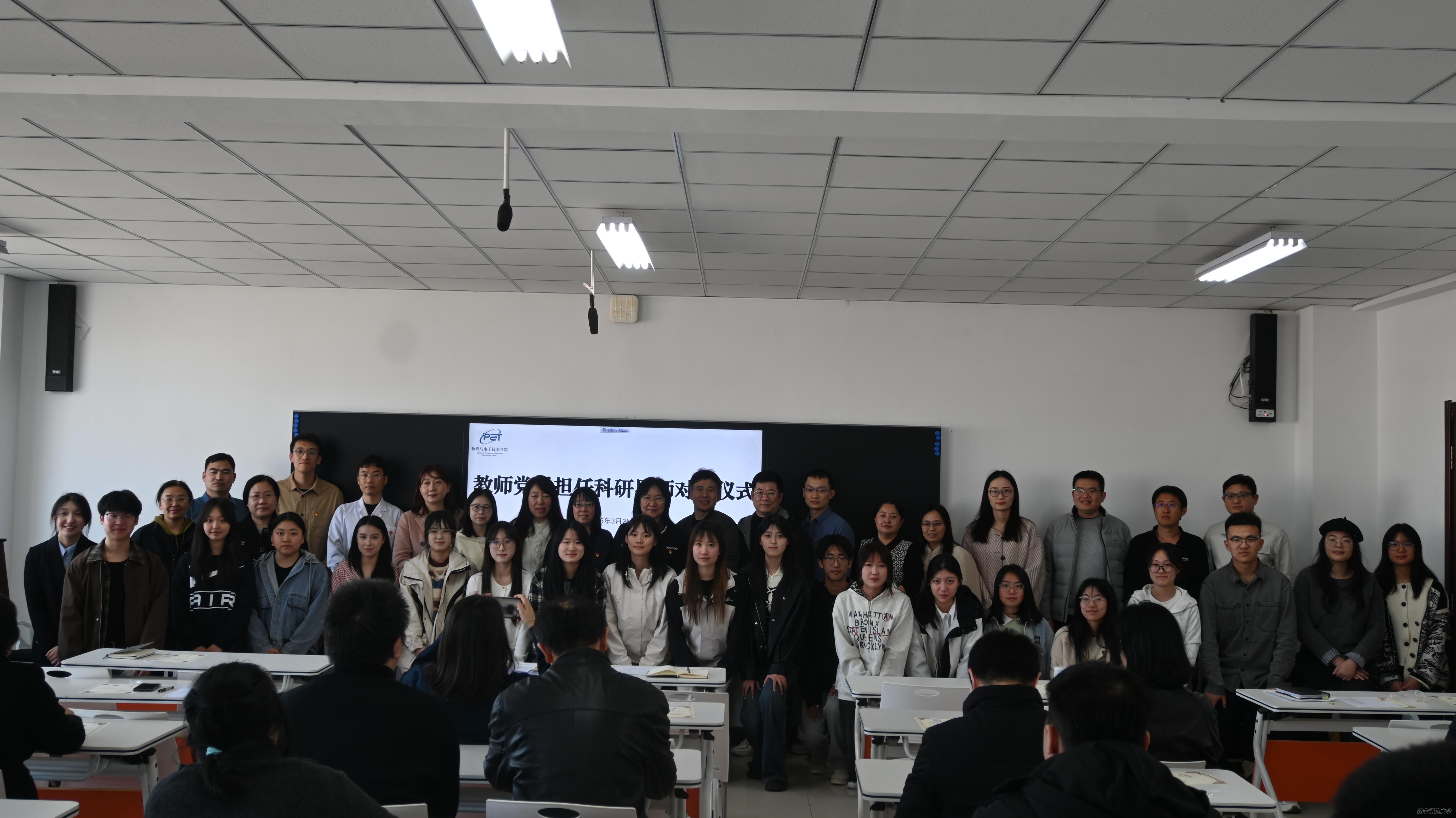 为弘扬践行教育家精神,实施铸魂强师行动,充分发挥党建育人作用,凝聚教师党员力量引领学生科研探究和创新,助力本科生成长成才,3月21日,物理与电子技术学院党委在理化楼A719教室举办了教师党员担任科研指导教师对接仪式。学院全体党委委员、党员科研导师及2023级本科生代表参加了此次活动,活动由学院党委副书记雷鸣主持。
