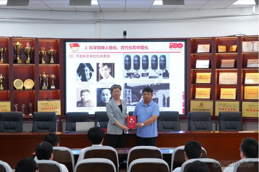 最后,学院党委书记曲建辉为王公老师颁发了科学家精神宣讲指导教师聘书。