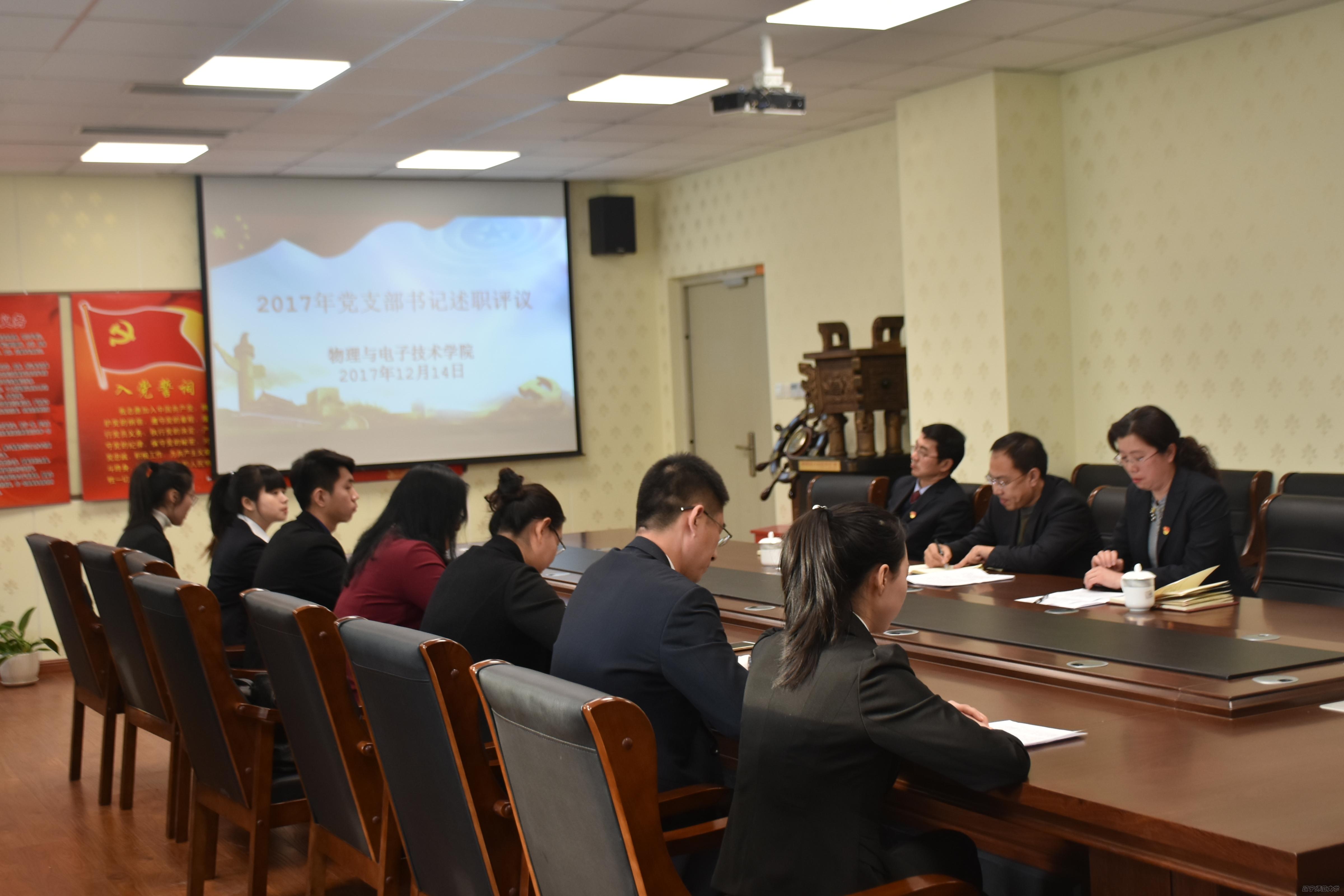 根据《辽宁师范大学2017年度党组织书记抓基层党建述职评议考核实施方案》要求,为进一步落实全面从严治党要求,推动全面从严治党向基层延伸,加强党支部规范化建设。2017年12月14日下午物理与电子技术学院在会议室召开了党支部书记抓基层党建工作述职评议会议,校党委组织部部长丛茂国出席了述职评议会,学院党总支成员及6名党支部书记参加本次会议,会议由学院党总支曲建辉书记主持。