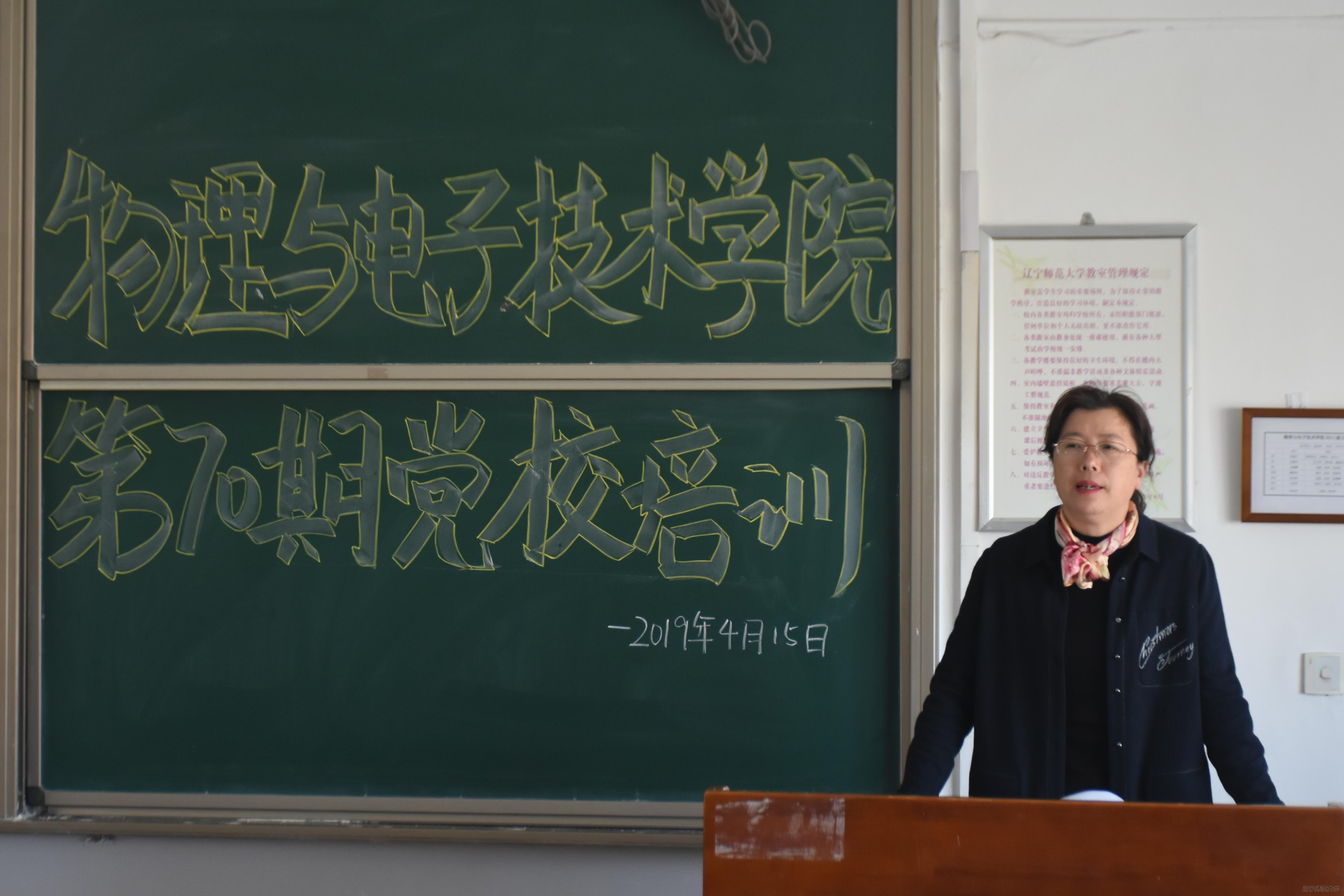 2019年4月15日12点半,物理与电子技术学院第70期党校培训开班仪式暨专题党课第一讲在辽宁师范大学外七合顺利举行。学院党委书记曲建辉担任主讲人,为培训班学员上题为《聚焦2019 全国“两会”》的专题党课,研究生、本科生的104名入党积极分子参加了此次培训,会议由学院组织员赵悦主持。