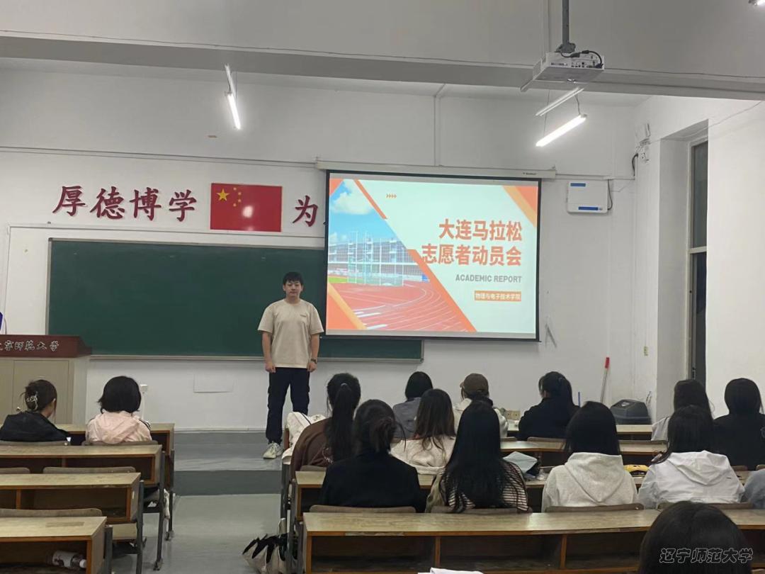10月15日,志愿者们在文科楼107召开大连马拉松志愿者动员会,执行主席王华东向同学们讲述了在“大马”比赛上的注意事项,提醒志愿者们要做好本职工作,为参赛者提供优质服务,展现属于我们物电学院的青春风采,最后向志愿者们颁发了志愿者证和早午餐包,整装待发,共同为“大马”服务。