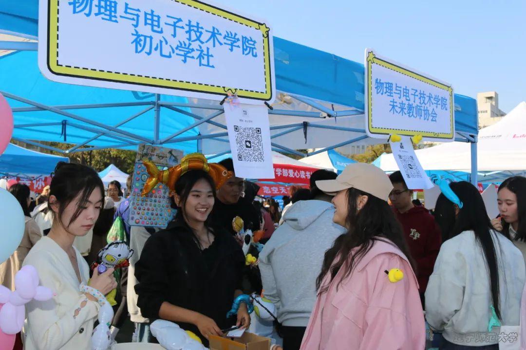2023年10月28日13点30分,辽宁师范大学第五届社团嘉年华正式开幕,物理与电子技术学院团委书记张倩老师也陪伴同学们参加了本次嘉年华。