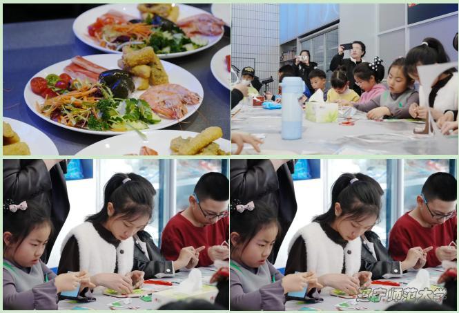 接下来,是手工诗歌贴纸画和青团沙拉拼盘制作环节,在我院同学的组织下,活动有序进行。青团沙拉拼盘前,孩子们像极了严谨的科研工作者,认真摆出各种图案。我们学院准备的清明诗词贴纸画材料包也大受欢迎,"清明时节雨纷纷"的贴纸被孩子们贴出各种生动有趣的创意造型。