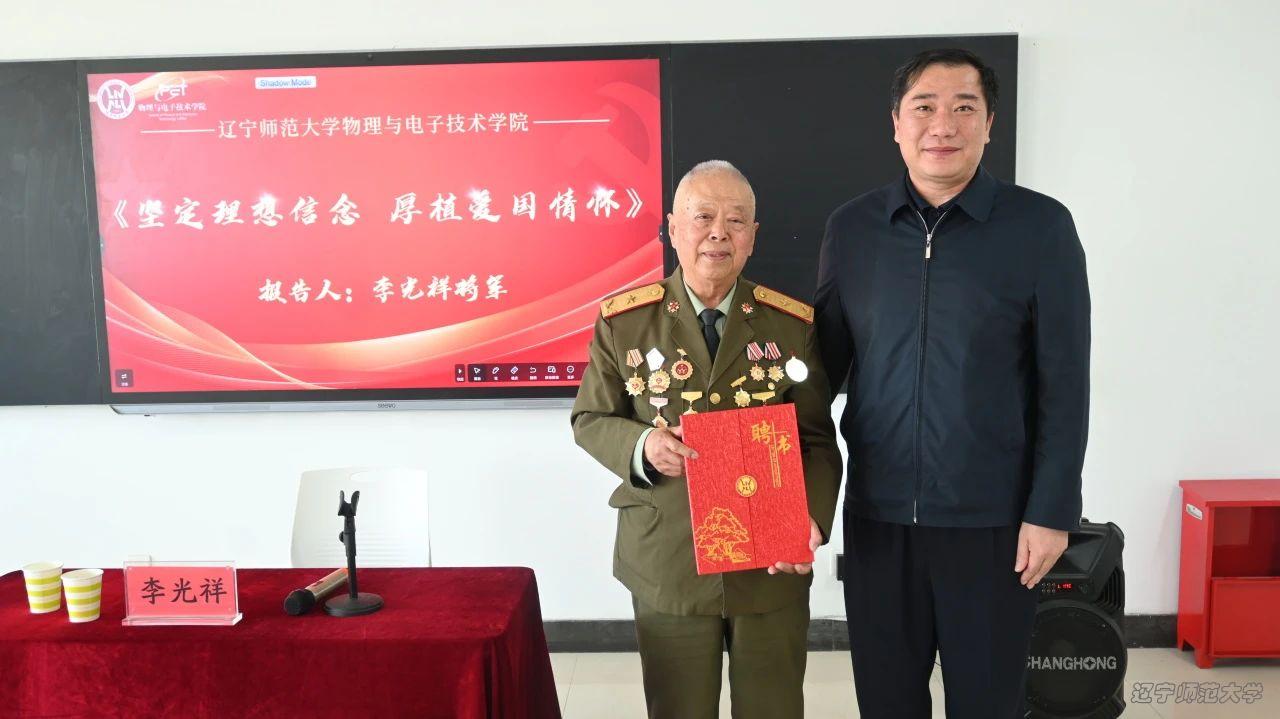 会议最后,学院党委副书记雷鸣老师为李光祥将军颁发校外辅导员证书,为本次活动画上圆满句号。