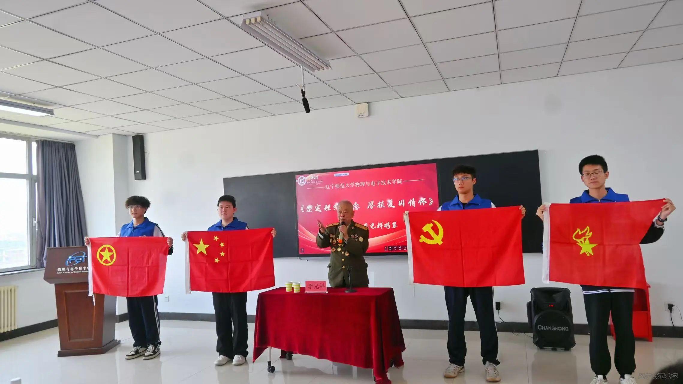 在五四运动106周年即将到来之际,为深入学习贯彻党的二十大精神,引领青年学子传承红色基因,弘扬“爱国、进步、民主、科学”的五四精神,4月30日,我院成功举办“青春挺膺担当 赓续五四华章”主题宣讲会暨志愿服务队成立仪式。原64集团军副政委、“中国好人”“时代楷模”、辽宁省岗位学雷锋标兵李光祥将军,大连市青少年发展基金会秘书长、大连市青少年发展服务中心希望工程工作部部长孙强,大连市青少年发展基金会监事、大连市青苹果公益服务中心理事长、“大连好人”吴彦龙,大连市优秀青年志愿者、大连市希望工程优秀志愿者、大连市希望工程贡献奖获得者崔斌,大连市优秀青年志愿者、大连市优秀青年志愿服务工作者、大连市希望工程优秀志愿者、大连市希望工程贡献奖获得者张诗朦,学院党委书记曲建辉老师、党委副书记雷鸣老师、2022级本科生辅导员任美懿老师、2023级本科生辅导员李昭锟老师以及部分志愿服务队成员参与此次活动。本次会议由学院团委书记兼2024级辅导员张倩老师主持。