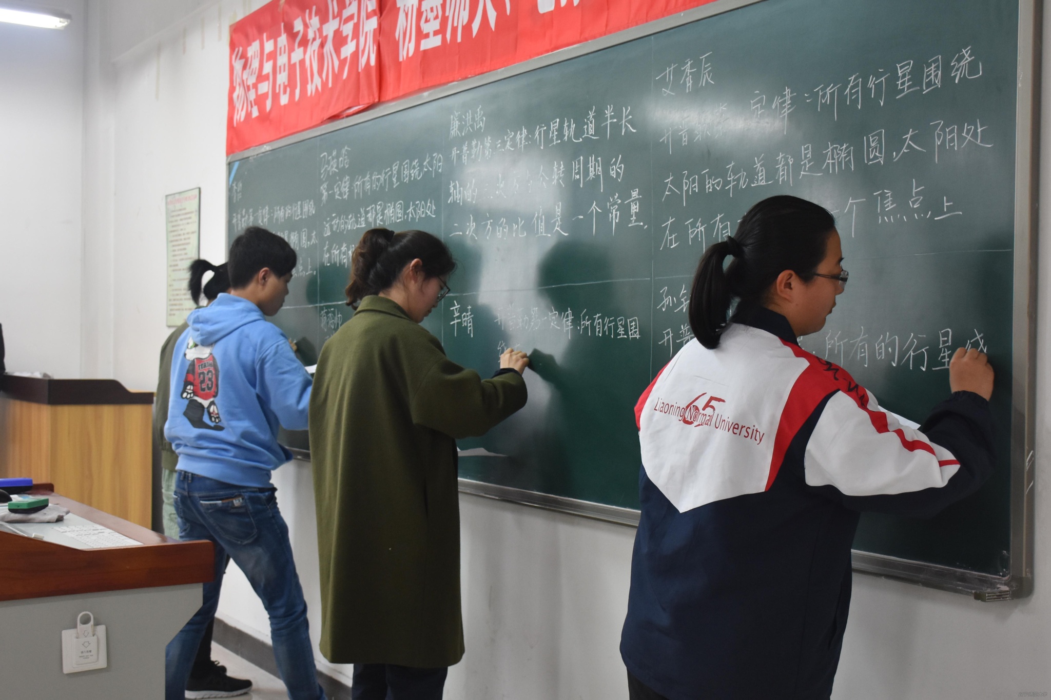 学院通过到用人单位走访调研,深入了解社会用人导向,围绕社会发展需求,学院修订了本科专业课程体系,对物理学(师范)专业增加了教师教育特色课程的占比,增设了板书训练等课程,制定本科生从师技能培训计划,以强化师范生从师技能的培养。坚持“请进来”与“走出去”相结合,每学年邀请省市基础教育领域的优秀教育工作者,为学生做从师素质和技能专题报告;开展粉笔字、钢笔字大赛、讲课大赛、普通话大赛、简历制作大赛,每年参与学生达1100余人次;积极开展校企合作共建学生校外实习、实训基地工作。