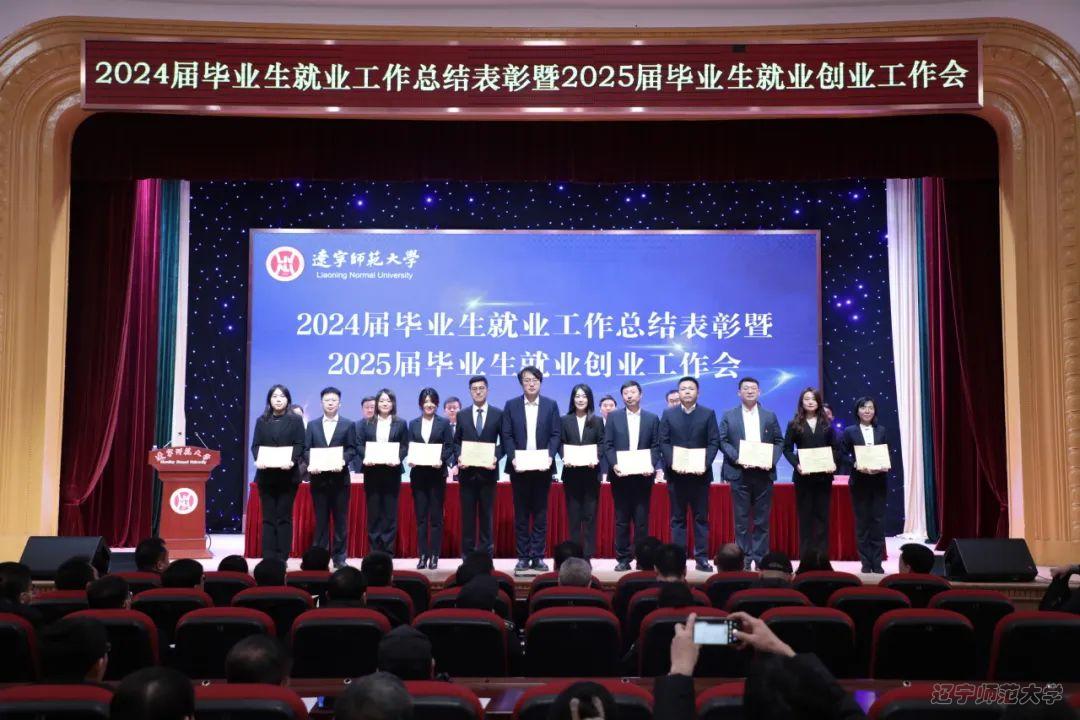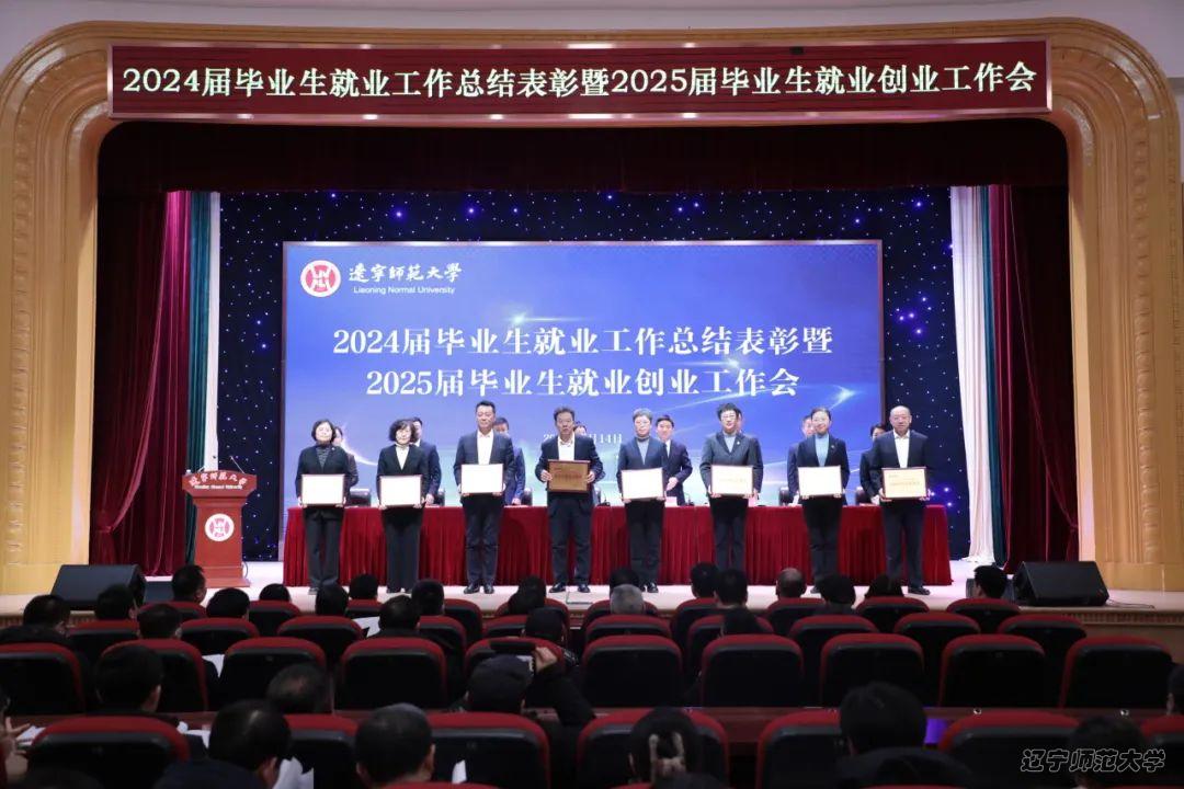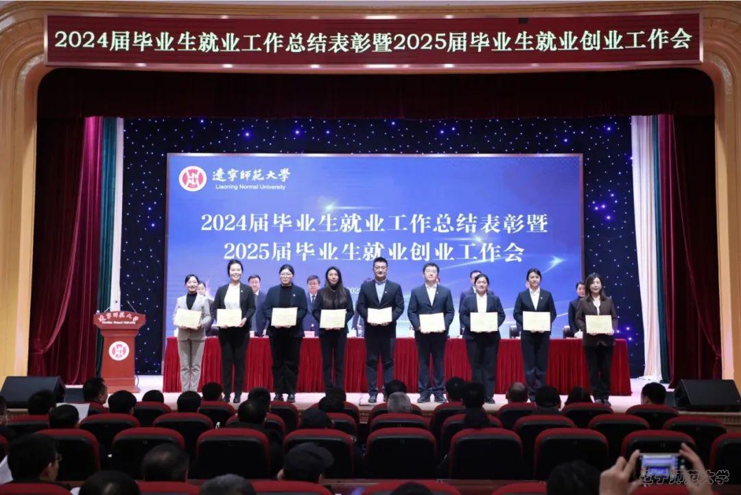 2025年1月14日下午,我校在礼堂召开辽宁师范大学2024届毕业生就业工作总结表彰暨2025届毕业生就业创业工作会。在对2024届毕业生就业工作表彰中,我院荣获辽宁师范大学2024届毕业生就业工作先进集体称号,学院党委书记曲建辉代表学院上台领取奖牌。我院团委书记张倩、研究生辅导员孙凯丽分别荣获2024届毕业生就业工作先进个人称号,会上,学院研究生辅导员孙凯丽作为就业先进个人代表分享了开展研究生就业工作的做法和感悟。