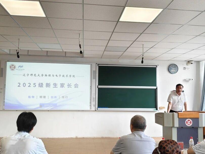 为了加强家长对学校的了解,促进家校共育。2025年9月6日14:00,辽宁师范大学物理与电子技术学院2025级新生家长会于文科楼教室201召开。我院院长孙景昌老师、副院长陈建兴老师、副院长杨硕老师、2025级本科生辅导员付逸海老师以及2025级本科生家长出席本次会议。本次会议由党委副书记兼2025级本科生辅导员雷鸣老师主持。