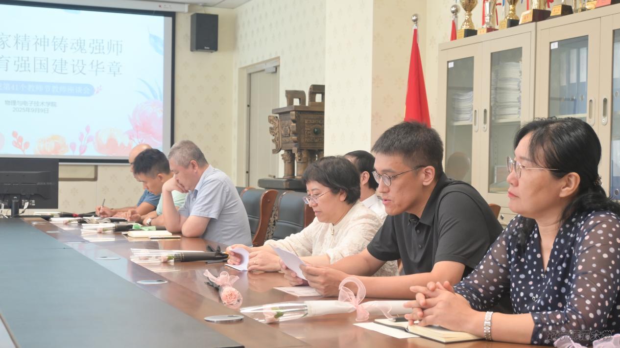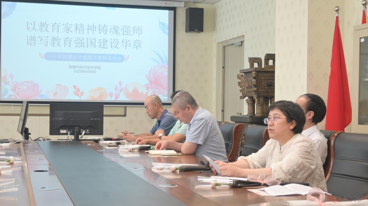 9月9日下午,在第41个教师节来临之际,物理与电子技术学院召开“以教育家精神铸魂强师 谱写教育强国建设华章”教师座谈会。学院领导、全体教师齐聚一堂,共庆教师节,共话教育情。