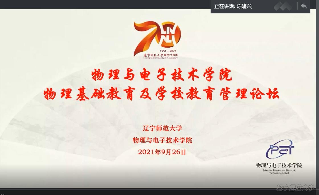 春秋有序,山河壮哉。七十载弦歌赓续,七十载桃李芬芳。值此校庆之际,为方便校友分享经验、加强交流,学院于9月26日上午精心策划组织了物理与电子技术学院优秀校友之物理基础教育及学校教育管理论坛线上会议,以此激励广大同学树立目标、奋发图强,更加增进校友以及学院师生间的深厚情谊。本次会议面向2019级、2020级全体本科生、部分研究生,邀请了王世杰、王立军、孟繁伟、苏晓东、黄静、赵冶、段立柱、徐红阳8位优秀校友进行成果介绍与经验分享,活动由物理与电子技术学院副院长陈建兴老师主持。