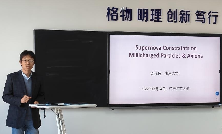 为促进学术交流、开拓师生研究视野,12月4日,学院邀请南京大学刘佐伟教授作题为《超新星对毫电荷粒子与轴子的约束作用》的学术报告。报告由副院长赵振华教授主持,我院物理学科带头人岳崇兴教授、高能物理理论与实验研究中心教师和研究生共同参加了本次学术活动。
