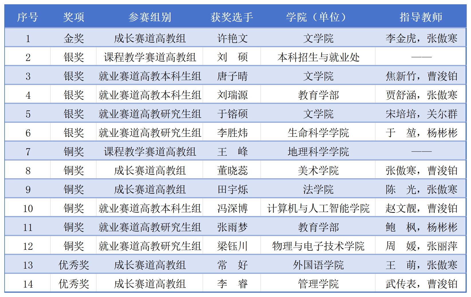 近日,第三届全国大学生职业规划大赛辽宁赛区决赛圆满收官。我校师生在全省103所高校、85万名参赛选手的激烈角逐中脱颖而出,一举斩获学生赛道金奖1项、银奖4项、铜奖5项、优秀奖2项;教师课程教学赛道同步斩获银奖1项、铜奖1项,学校获评“优秀组织奖”。其中,我院2025级学科教学(物理)专业研究生梁钰川获得铜奖。